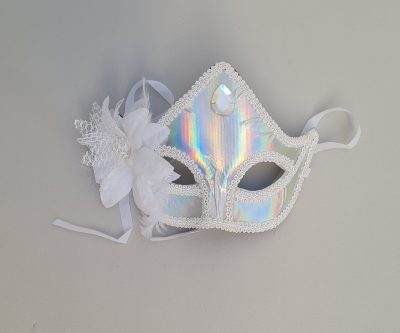 Máscara estilo veneziana na cor branca. Consulte-nos para maiores informações