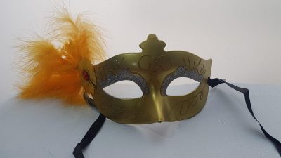 Máscara amarela veneziana Halloween Carnaval. Consulte-nos para maiores informações.