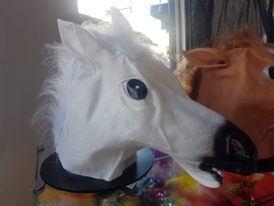 Máscara de coelho branca, composição plástico. Consulte-nos para maiores informações.