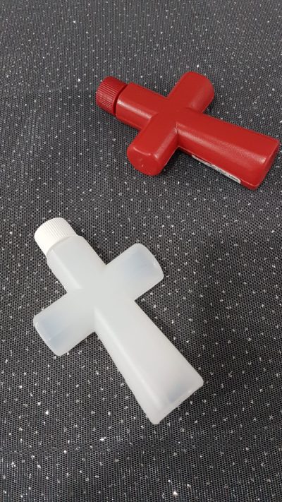 Garrafinha cruz plástica 100 ML CORES VERMELHA E BRANCA. Consulte-nos para maiores informações whats.
