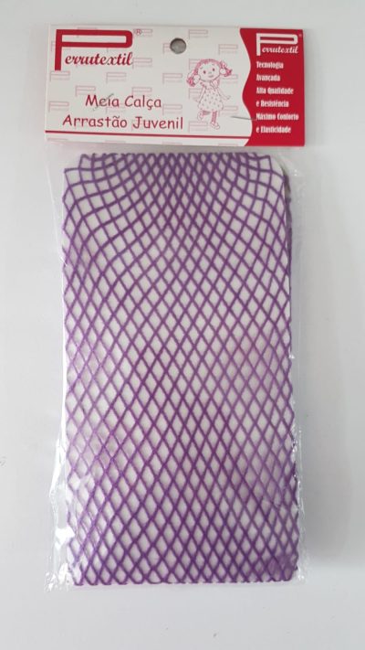 Meia calça arrastão roxa juvenil tamanho único, composição 93% poliamida 7% elastodieno. Consulte-nos para maiores informações.