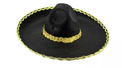 Chapéu Mexicano Sombreiro Mariachi feltro preto dourado, tamanho único. Consulte-nos para maiores informações.