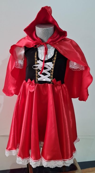 Fantasia chapeuzinho vermelho Eva, composta de vestido e capa. Consulte-nos  para maiores informações.