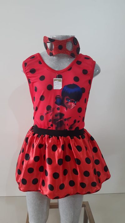 Fantasia Ladybug infantil. Composta de body, saia e máscara. Consulte-nos para maiores informações.