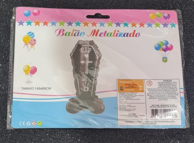 Balão formato caixão Halloween metalizado 1.49x 69cm. Consulte-nos para maiores informações.