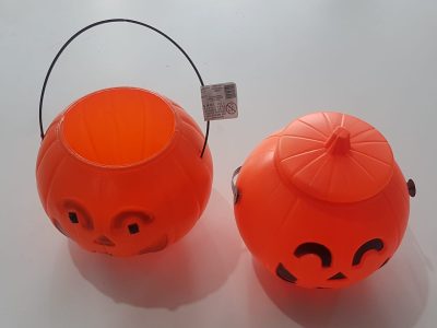 Balde de abóbora com tampa e sem tampa de Halloween. Consulte-nos para maiores informações.
