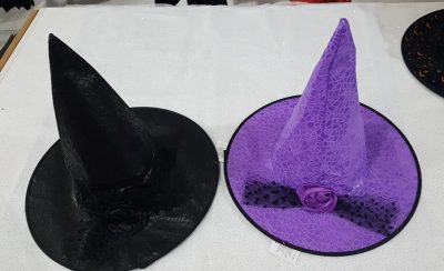 Chapeis de bruxa de diversas cores e desenhos. Consulte-nos para mais informações.