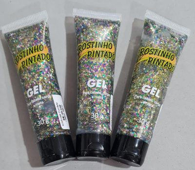 Glitter gel corpo cabelo com 30g Rostinho Pintado. Consulte-nos para maiores informações.