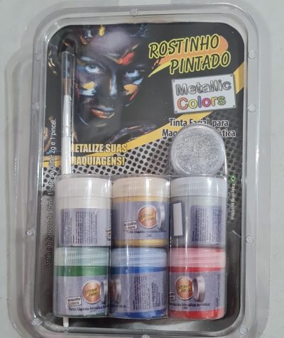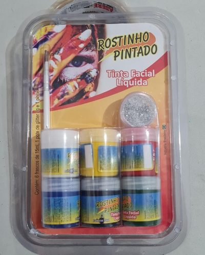 Kit tinta facial líquida com 6 unidades com 15ml cada, glitter e pincel . Consulte-nos para maiores informações.
