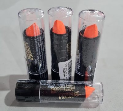 Batom fluor neon maquiagem artística rostinho pintado laranja. Consulte-nos para maiores informações.