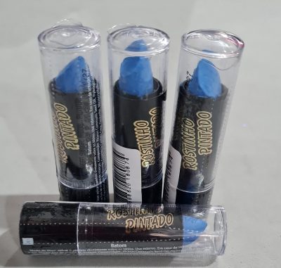 Batom fluor neon maquiagem artística rostinho pintado azul. Consulte-nos para maiores informações.
