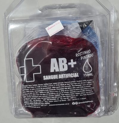 Bolsa sangue artificial 150ml rostinho pintado Halloween. Consulte-nos para maiores informações.