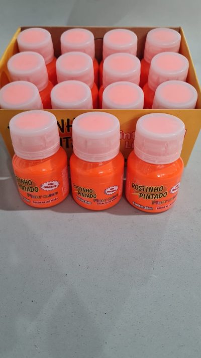 Tinta facial artística fluor brilha luz negra 15ml, Rostinho Pintado na cor laranja. Consulte-nos para maiores informações.