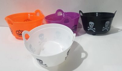 Tigela plástica nas cores: Roxa; Branca; Laranja; Preta. Halloween. Consulte-nos para maiores informações.