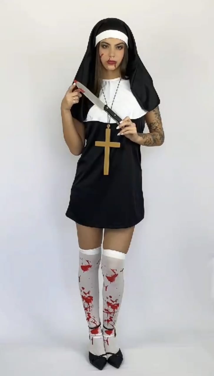 Fantasia Freira do Terror curta Halloween Adulto, não acompanha faca, meia e sapato. Consulte-nos para orçamento venda ou aluguel.
