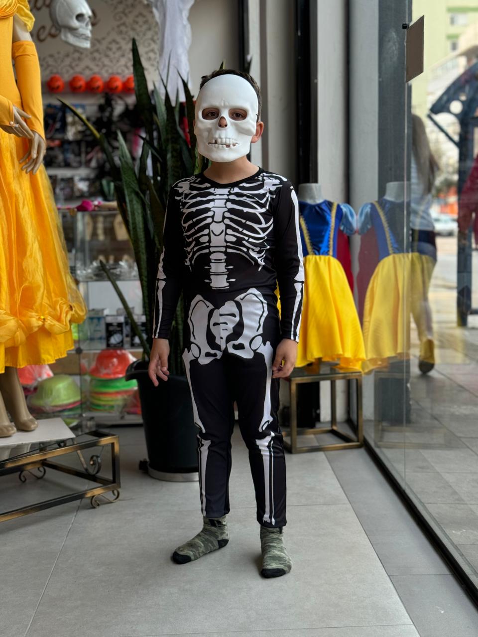 Fantasia macacão esqueleto longo composto de máscara e macacão. Consulte-nos para maiores informações.