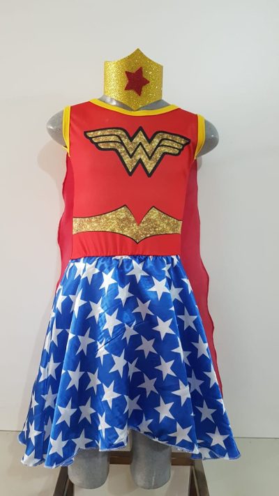 Fantasia Mulher Maravilha. Composta vestido e tiara. Consulte-nos para maiores informações.