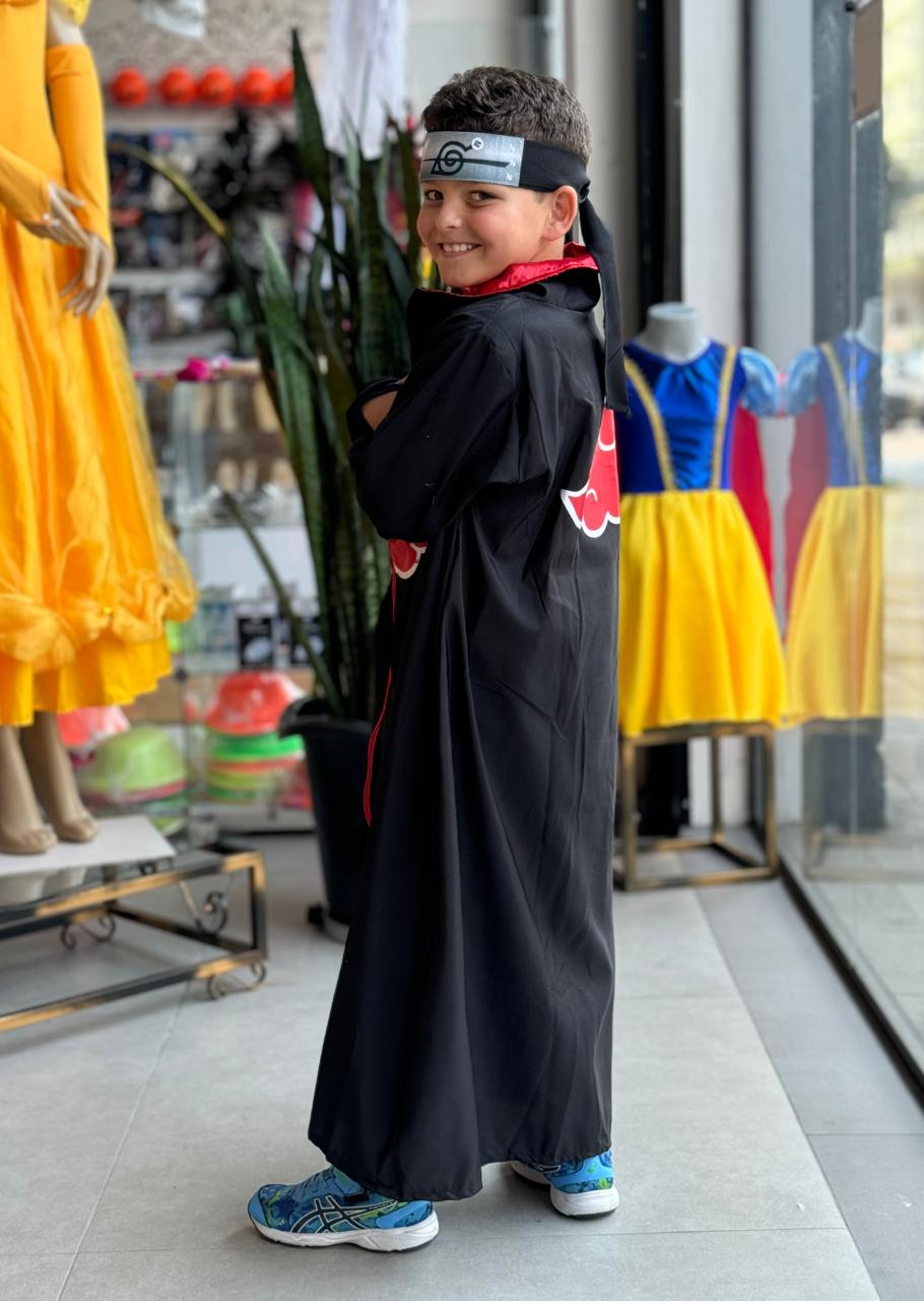 Fantasia Itachi Akatsuki infantil, composta de manto e faixa. Consulte-nos para maiores informações.