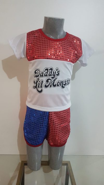 Fantasia Arlequina adulto, composta de camiseta e short . Consulte-nos para orçamento venda ou aluguel.