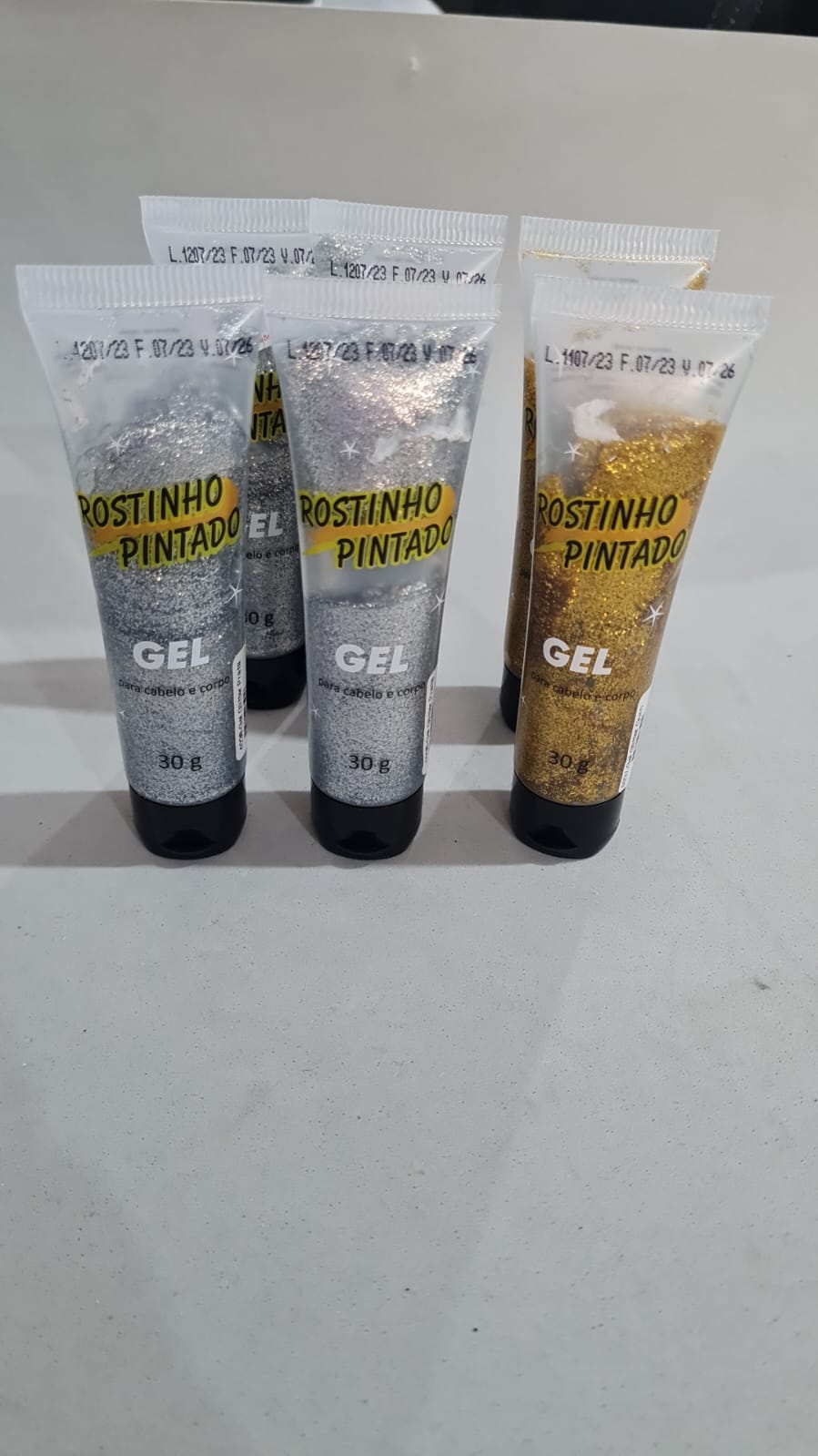 Glitter gel corpo cabelo com 30g Rostinho Pintado. Consulte-nos para maiores informações.