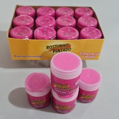 Tinta facial artística fluor brilha luz negra 15ml, Rostinho Pintado na cor rosa. Consulte-nos para maiores informações.