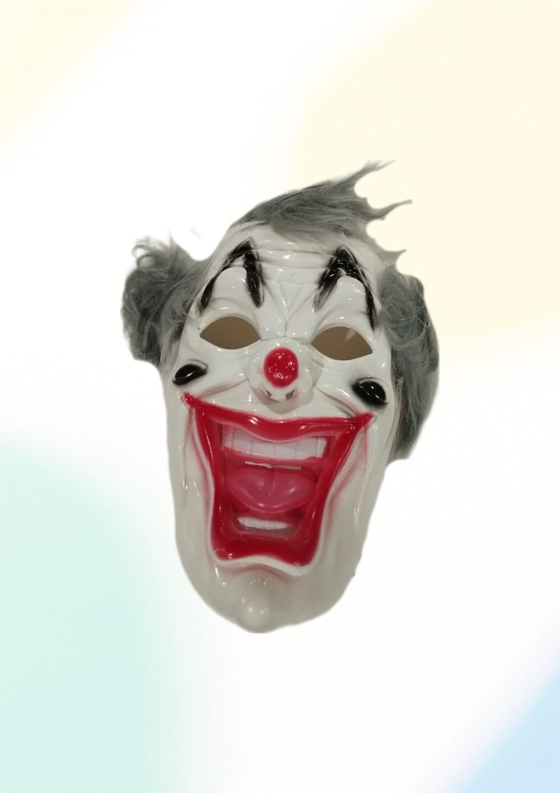 Máscara palhaço assassino cinza castanho loiro colorido com elástico. Consulte-nos para maiores informações.