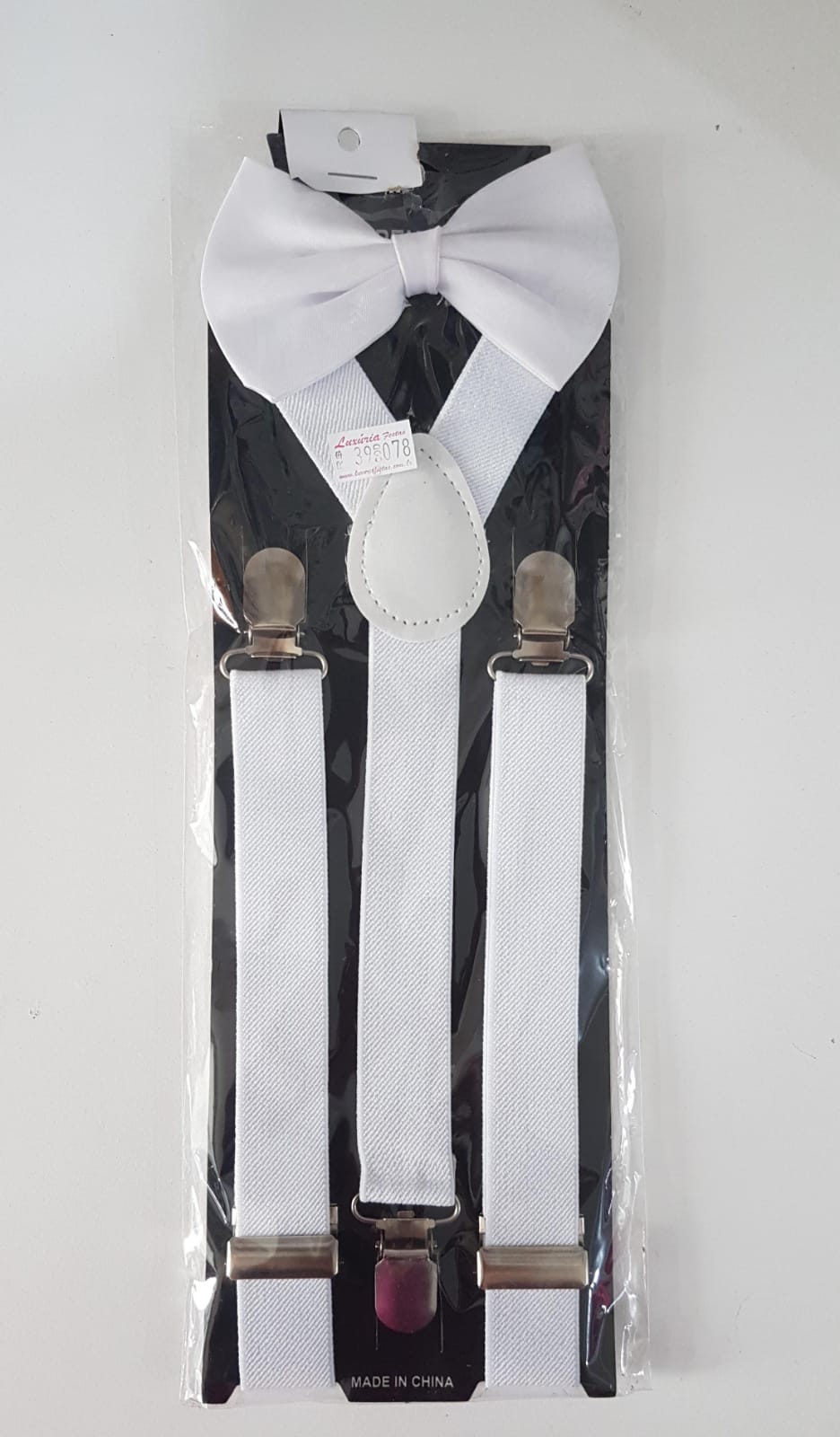 Kit suspensório e gravata borboleta na cor branco, Consulte-nos para maiores informações.