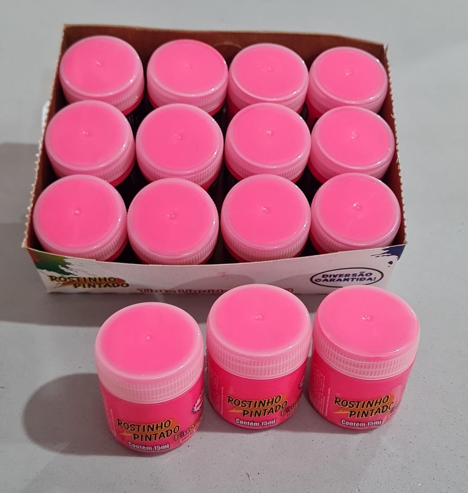 Tinta facial artística fluor brilha luz negra 15ml, Rostinho Pintado na cor rosa pink. Consulte-nos para maiores informações.