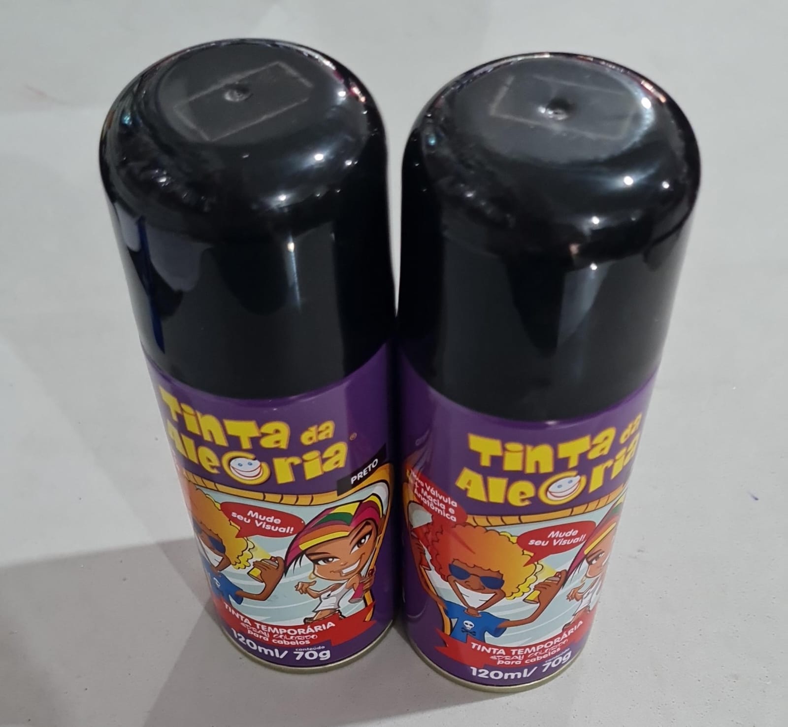 Tinta spray temporária para cabelo 120ml na cor preta. Consulte-nos para maiores informações.